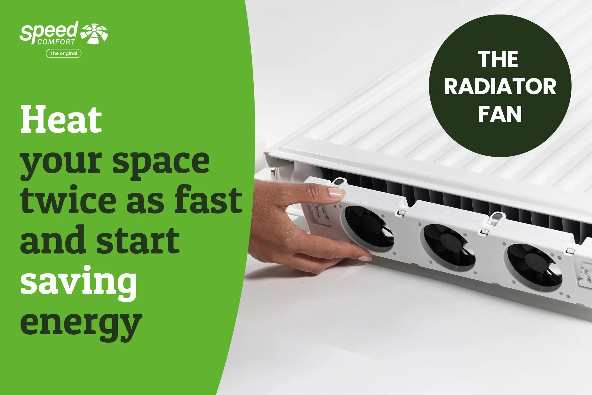SpeedComfort is a radiator fan that you simply click into place under your radiator using magnets. As soon as the radiator heats up, it helps push that warmth straight into the room. The result is faster, much more even heat distribution. You feel the comfort right away, while your heating system doesn’t have to run as long or as hard. And you’ll notice that not only in your home, but on your energy bill too.