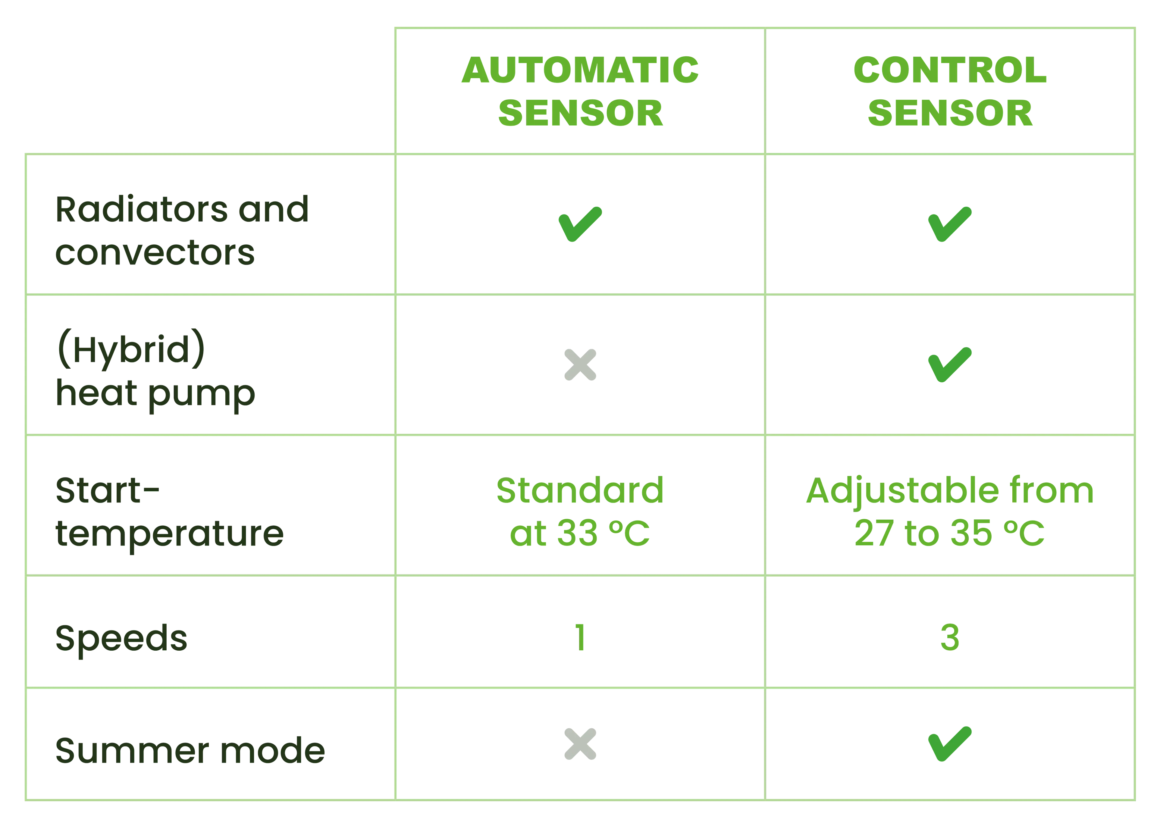Thanks to this smart automatic operation, you immediately gain more comfort and efficiency from your heating. The sensor ensures constant air circulation, helping rooms reach the right temperature faster and saving energy in the process.In short: the Automatic sensor offers convenience, reliability and optimal performance.