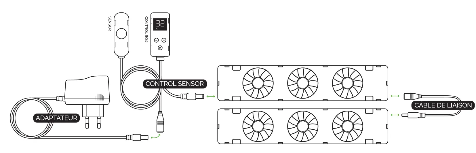 Mesure la température de l’eau du radiateur et s’active automatiquement entre 27 °C et 35 °C.